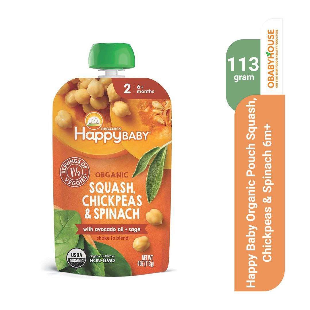 Happy Baby Organic Pouch Squash, Chickpeast & Spinach 6m+ 99 gr