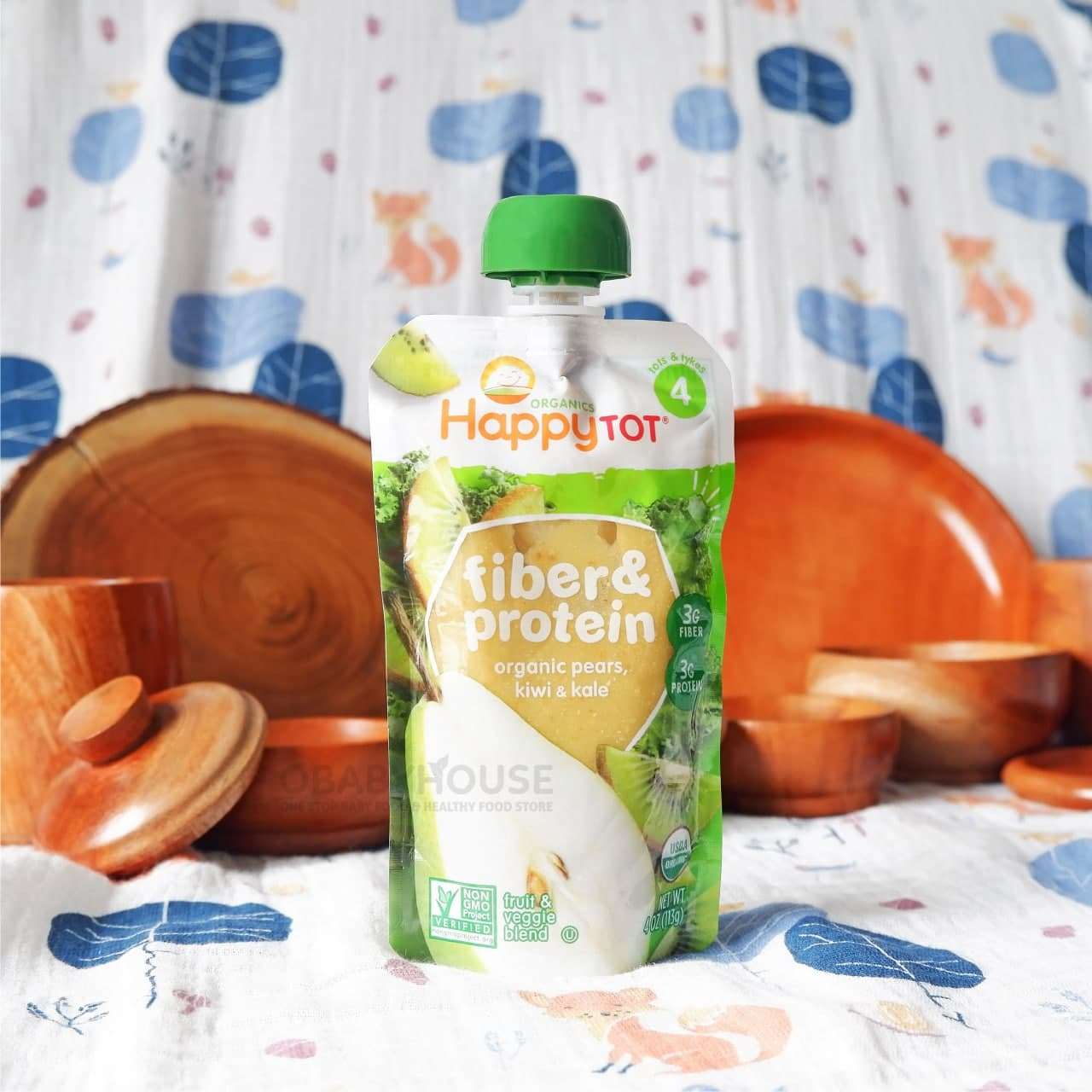 Happy Baby Pouch Fiber & Protein Organic Pears, Kiwi & Kale Stage 4