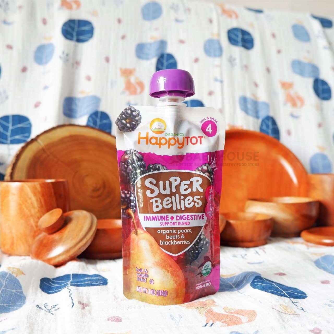 Happy Baby Pouch Super Bellies, Organic Pears, Beets & Blackberries Stage 4