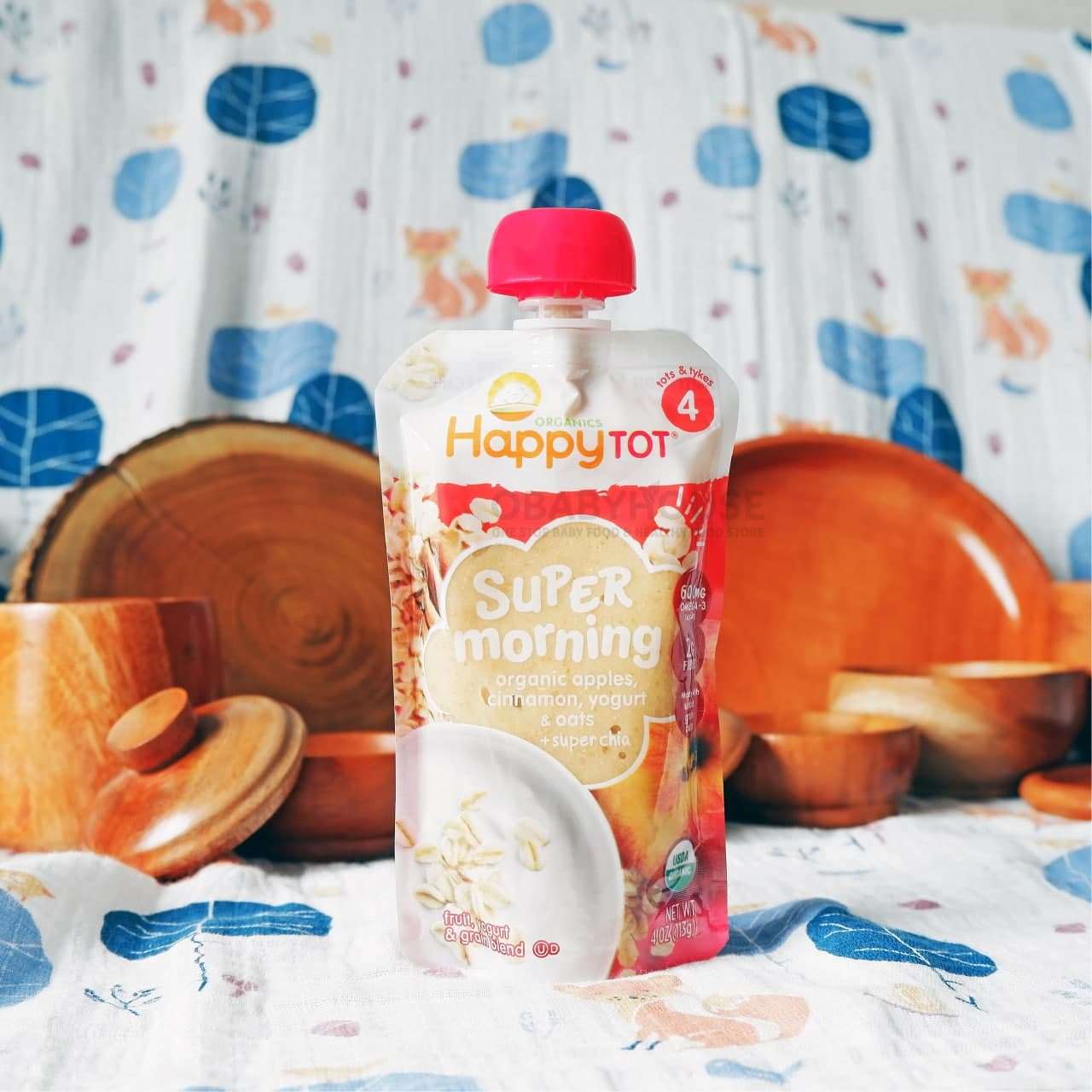 Happy Baby Pouch Super Morning Organic Apples, Cinnamon, Yogurt & Oats + SuperChia Stage 4