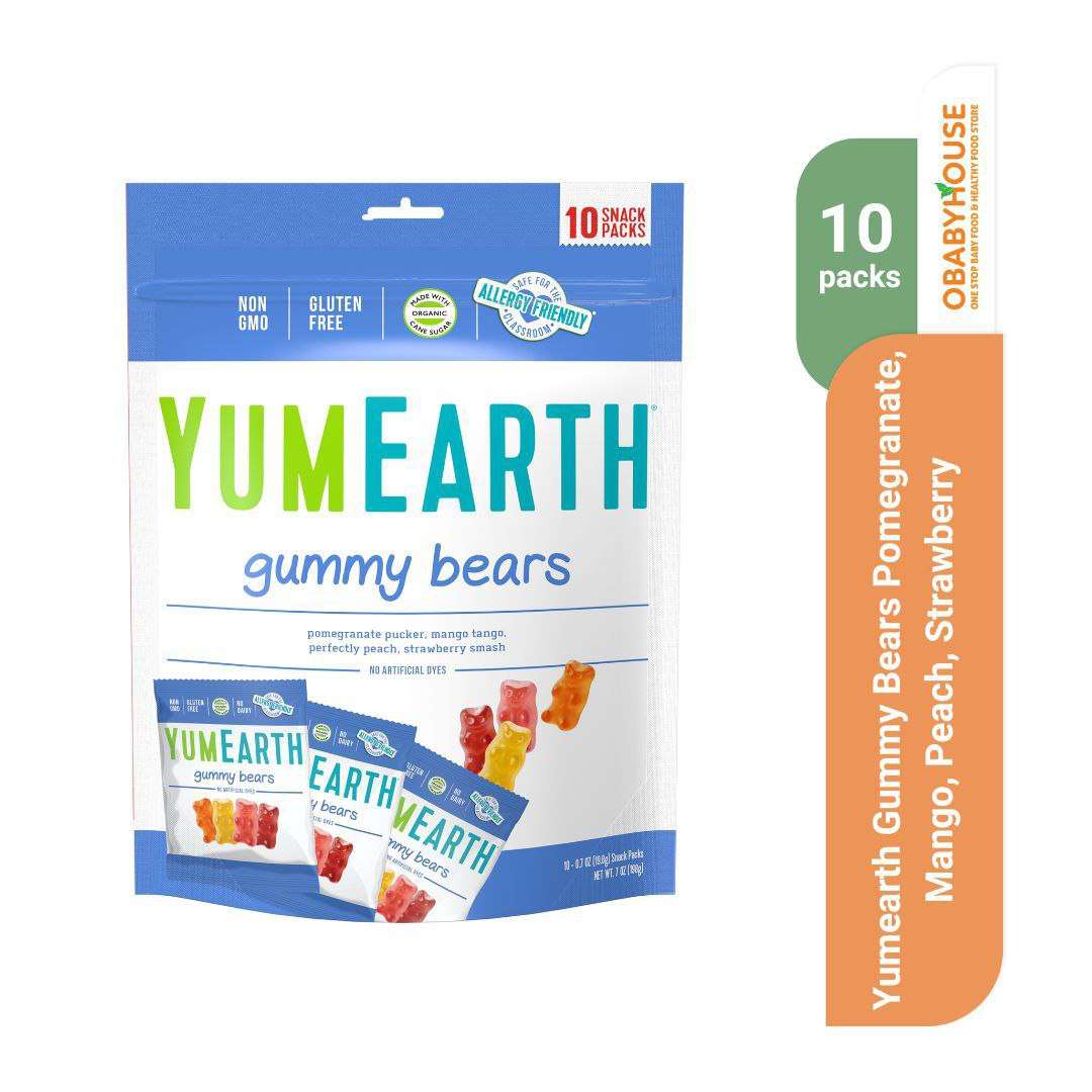 Yumearth Gummy Bears Pomegranate, Mango, Peach, Strawberry Isi 10 packs