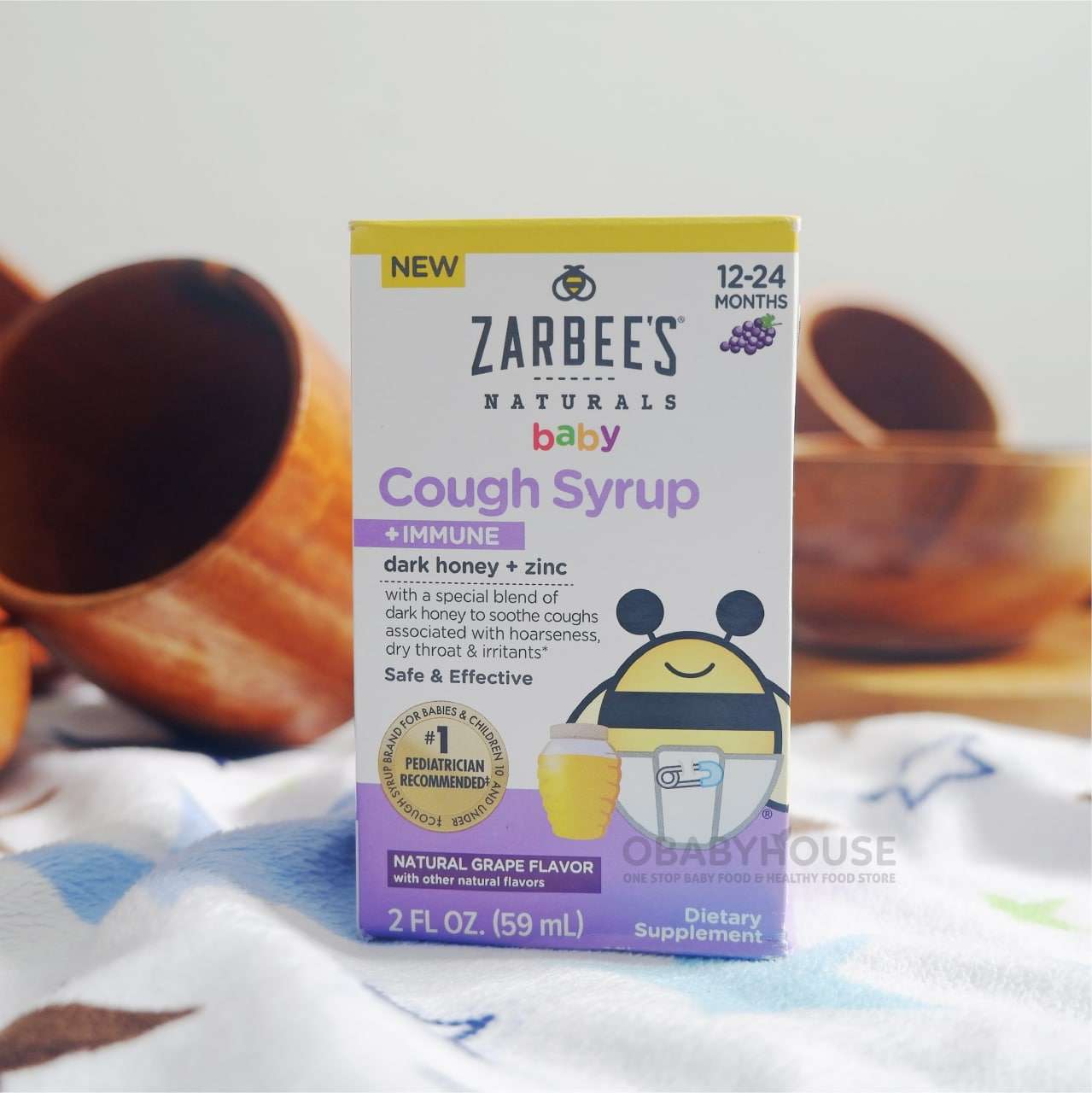 Zarbee’s Baby Cough Syrup + Immune with Dark Honey & Zinc – Natural Grape Flavor 59 ml